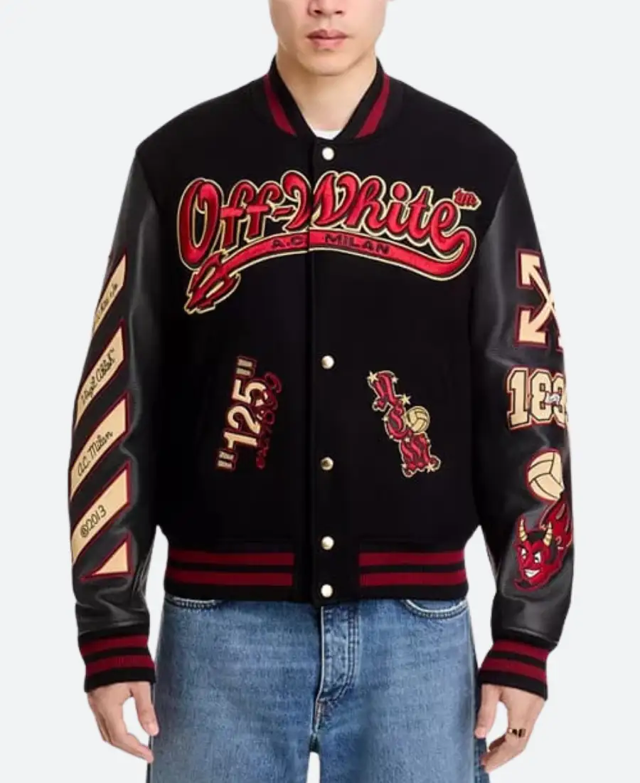 AC Milan X Off White Black Varsity Jacket