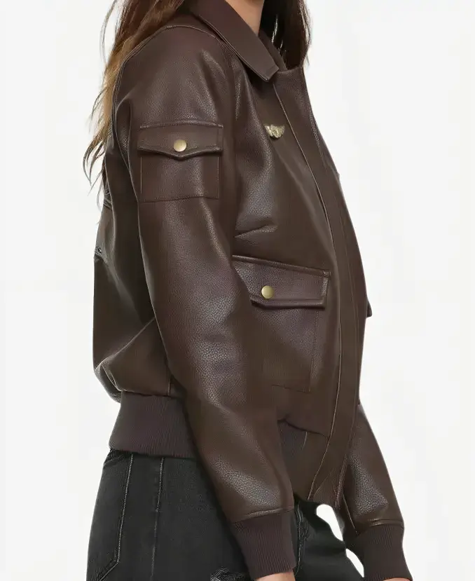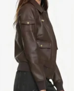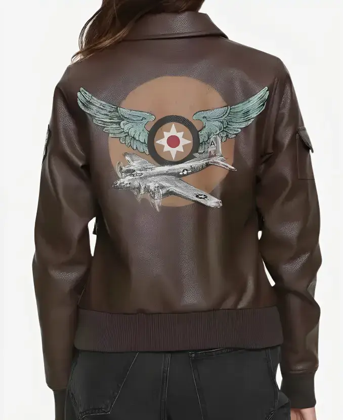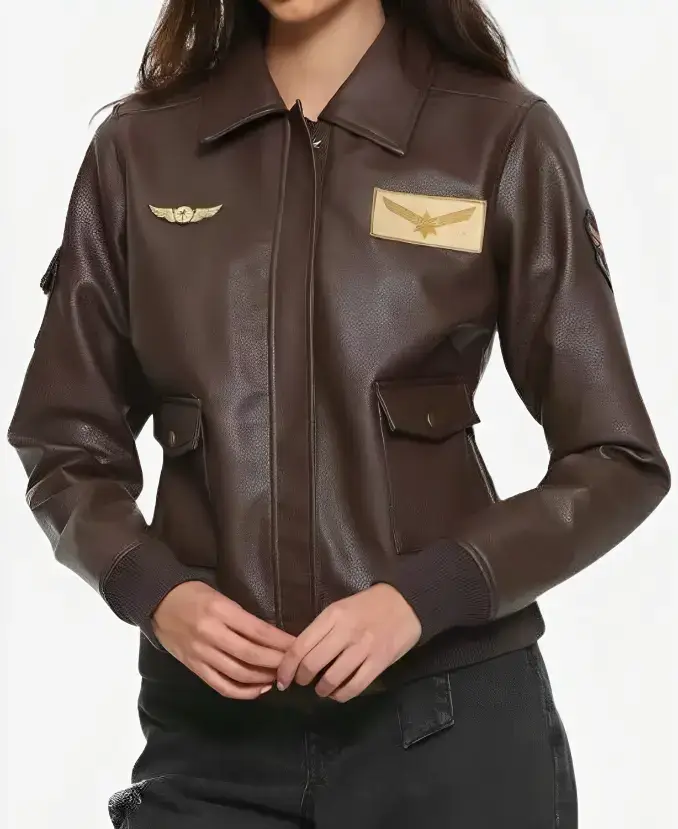 Brie Larson Captain Marvel Carol Danvers Air Force Brown Leather Bomber Aviator Jacket