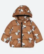 Snoopy Brown Puffer Hooded Jacket