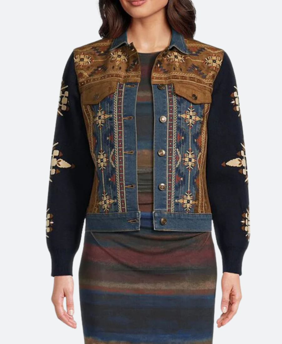 The Voice 2024 Reba Embroidered Suede Leather Jacket