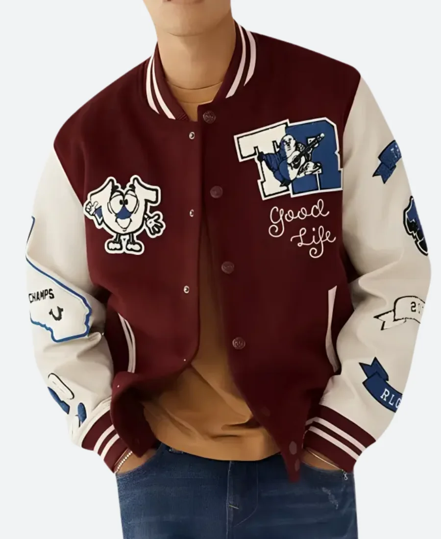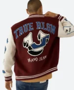 True Religion Good Life Maroon & Cream Letterman Varsity Jacket